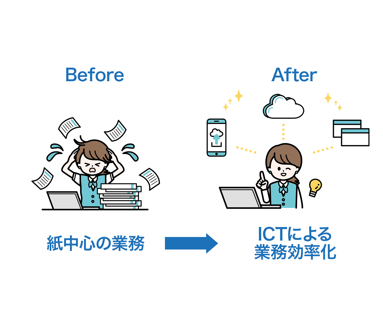 記録ソフトや介護請求システム、勤怠・会計などのICTツール導入を支援。